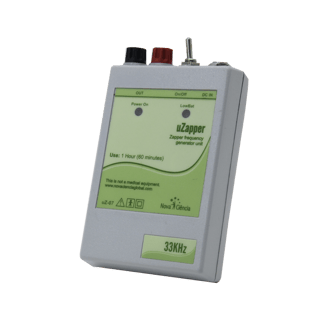 Gerador de frequências sonoras em onda quadrada, com sistema microprocessado, de alta estabilidade de frequência, portátil, com carregador de bateria integrado, temporizador de 60 minutos. Disponível em quatro versões específicas: 528 Hz, 1 KHz, 2,5 KHz e 33,3 KHz, cada uma com uma frequência fixa.